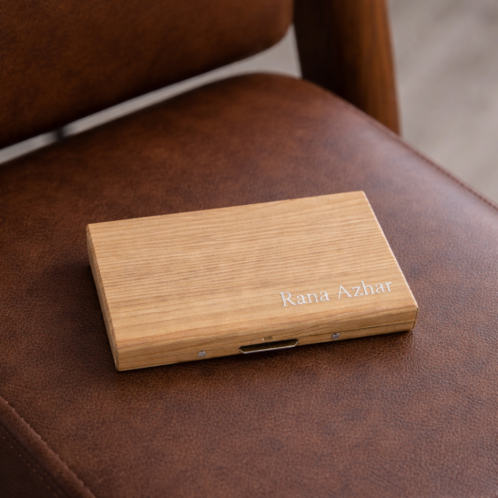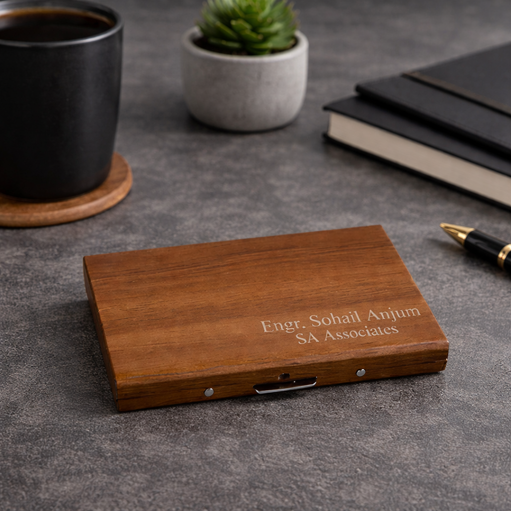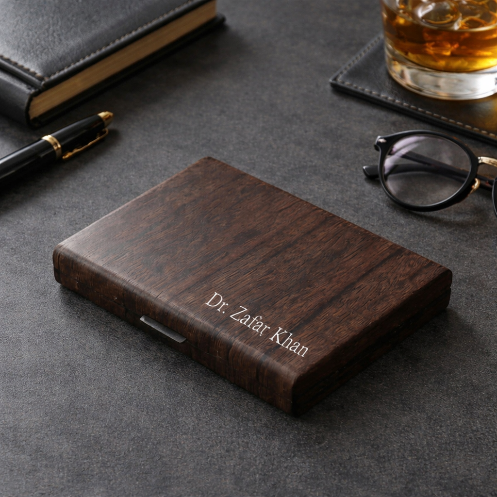 A premium all-in-one wallet designed to carry your essentials in style, convenience, and elegance. Personalized engraving with your Name, Company