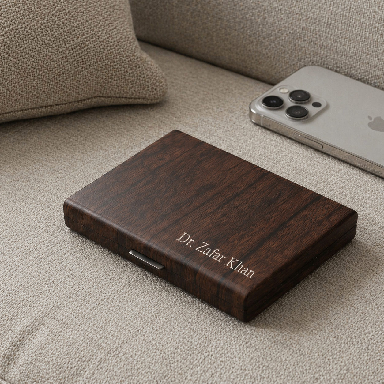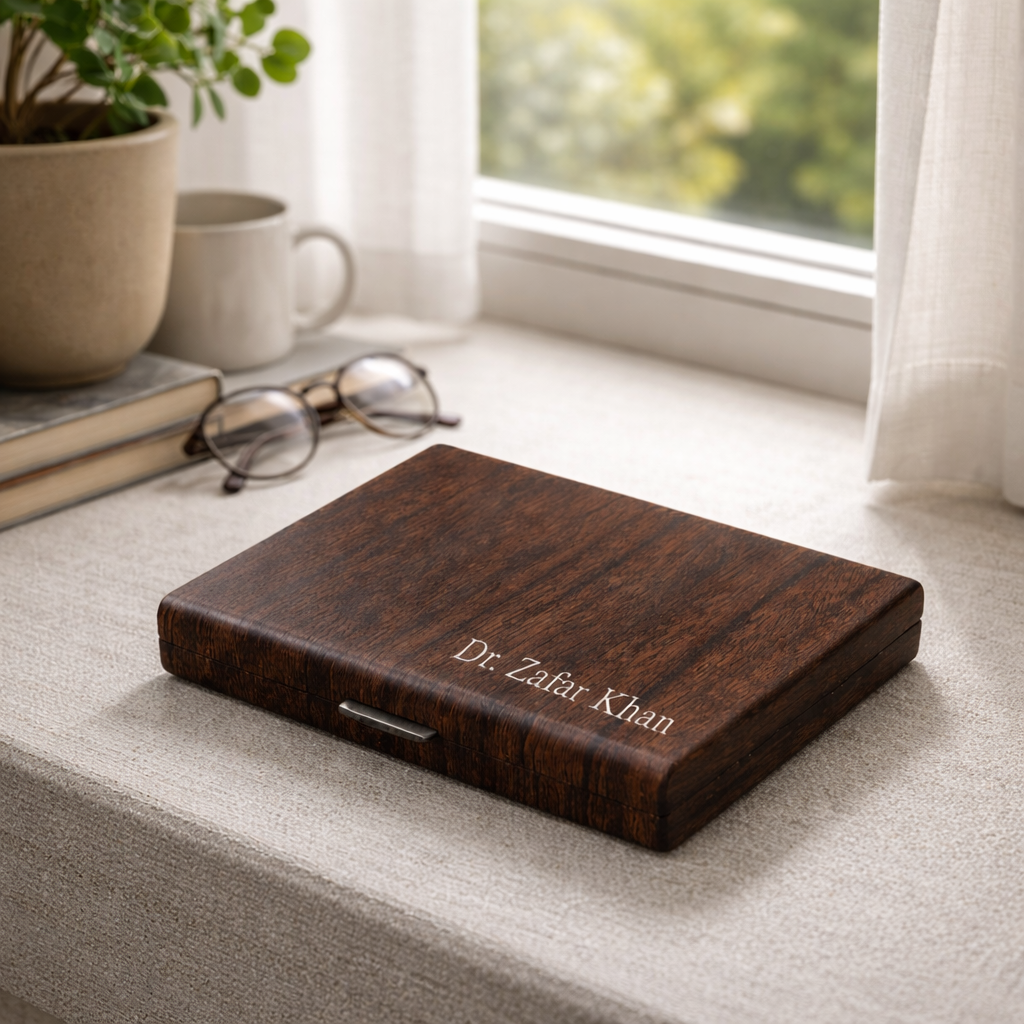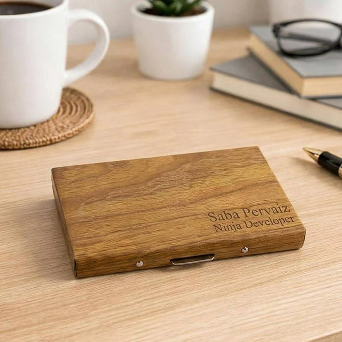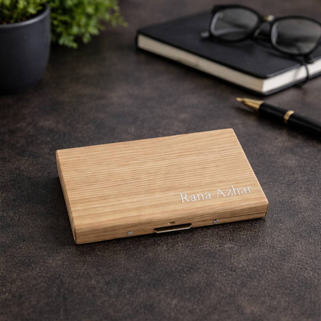 A premium all-in-one wallet designed to carry your essentials in style, convenience, and elegance. Personalized engraving with your Name, Company