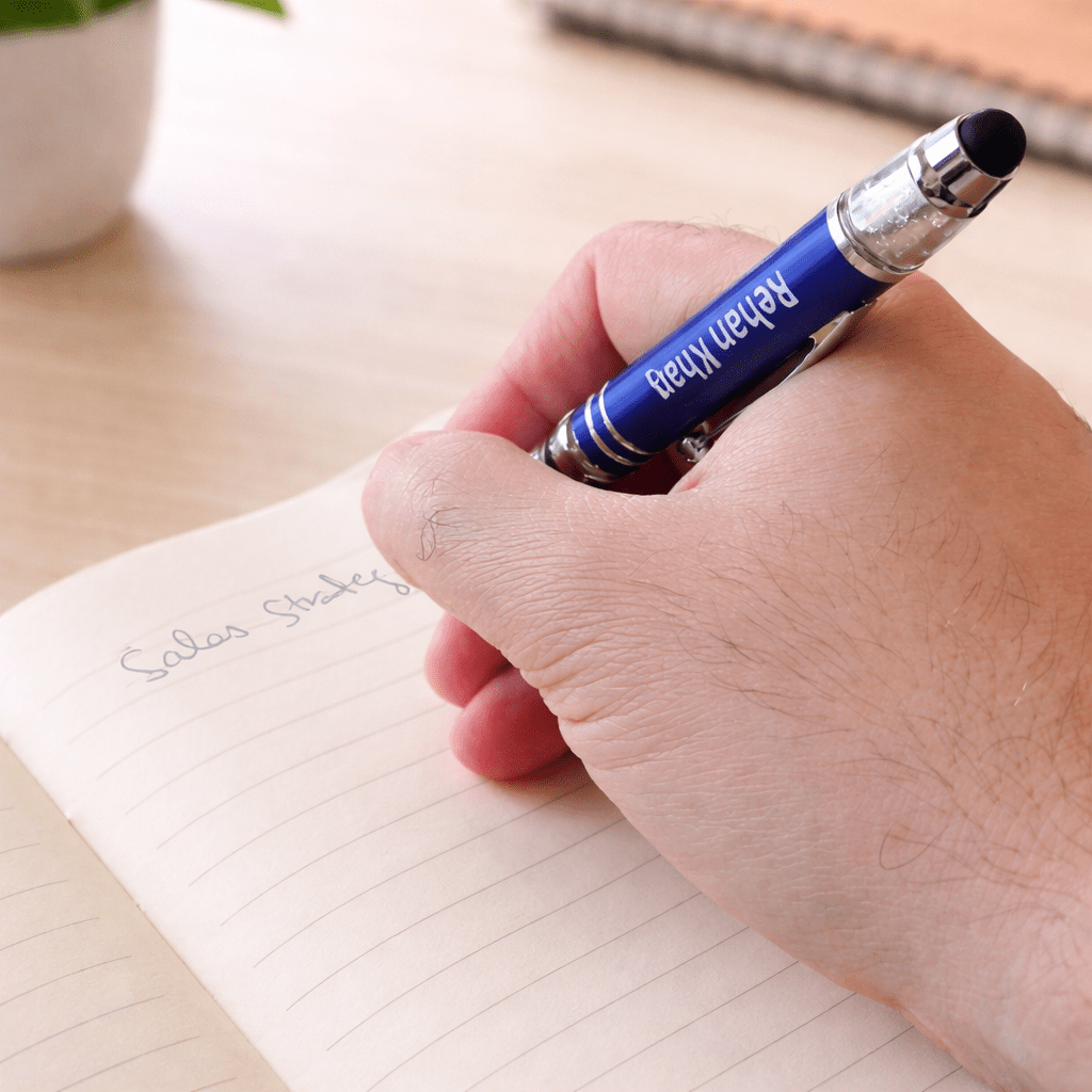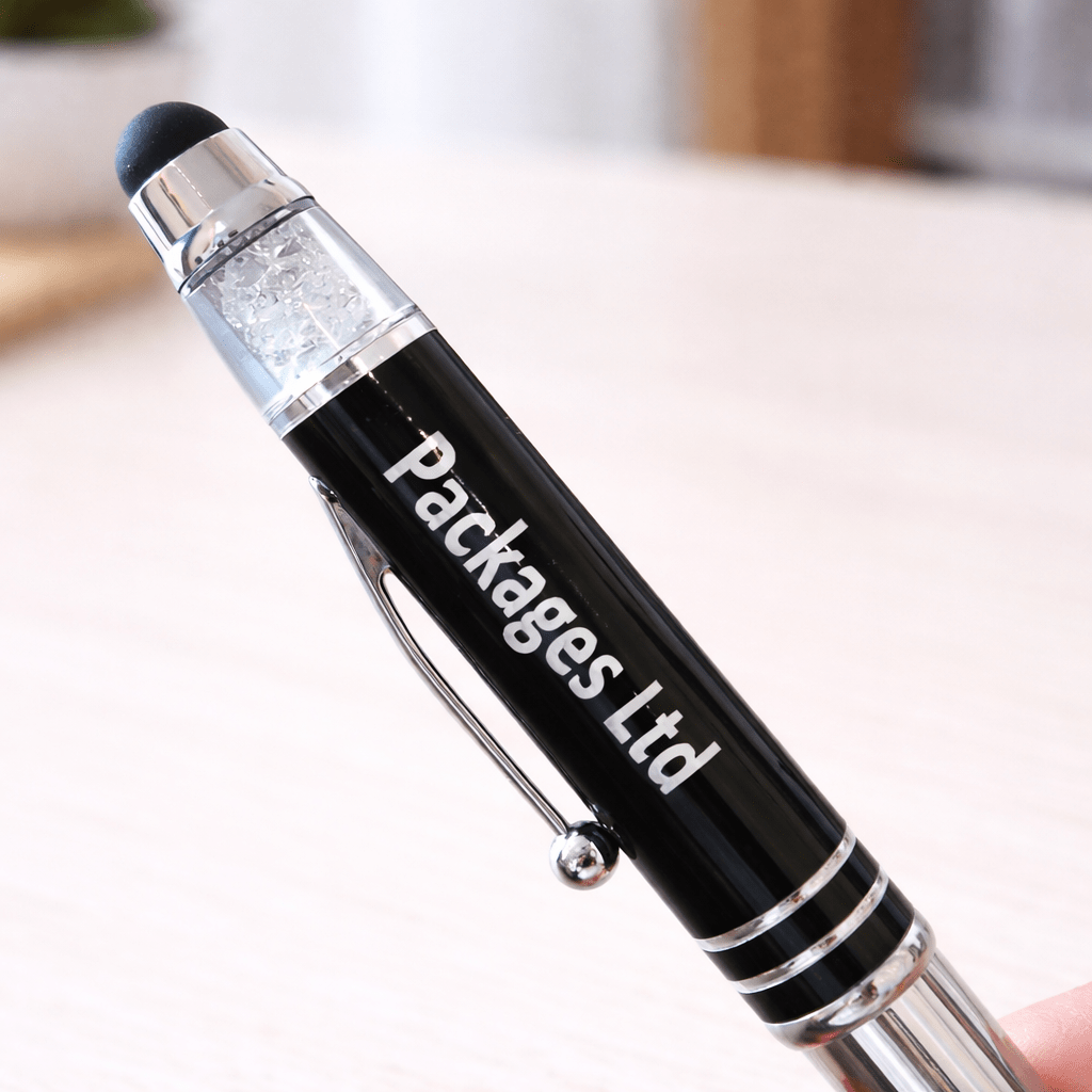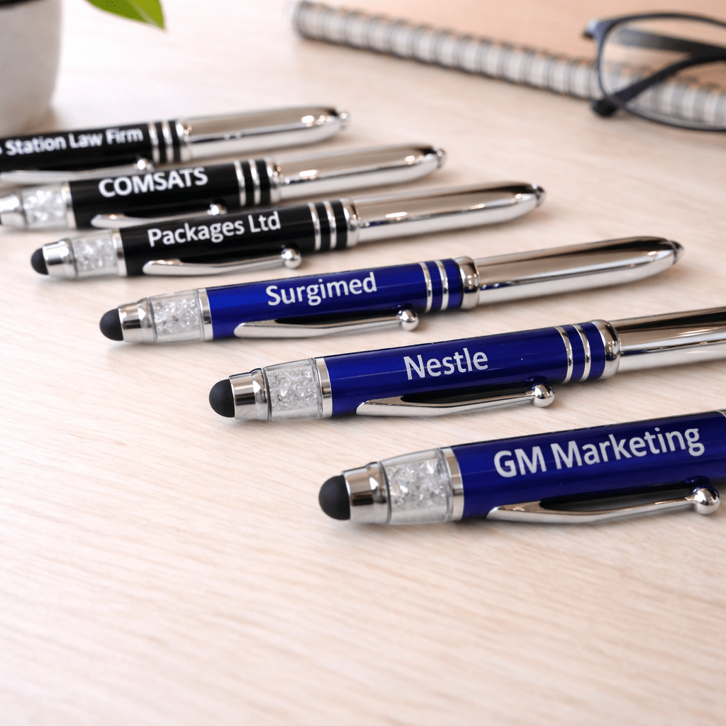 Name Pen With Stylus, Torch & Mobile Holder