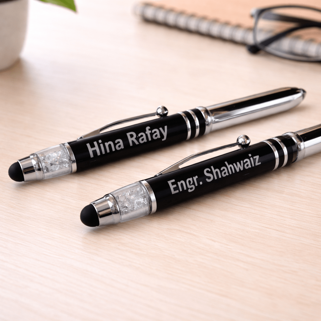 - Personalized name engraved pen with Torch Light | Crystal Cap | Stylus